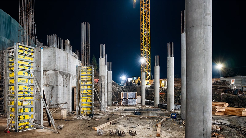 На об’єкті продовжується активна робота: влаштування проміжної балки укріплення укосів виконано на 100%, натяжка анкерів готова на 95%. Завершено гідроізоляційні роботи фундаментної плити та розпочато армування. Виконуються вертикальні конструкції — завершені квадратні та круглі колони. Завершено армування та бетонування третьої фундаментної плити.