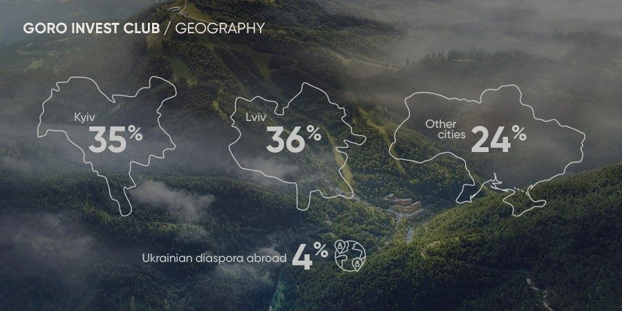 GORO investors represent 22 different industries and primarily live in Kyiv (35%) and Lviv (36%). Another 24% live in 14 other Ukrainian cities, and 4% are part of the Ukrainian diaspora abroad.